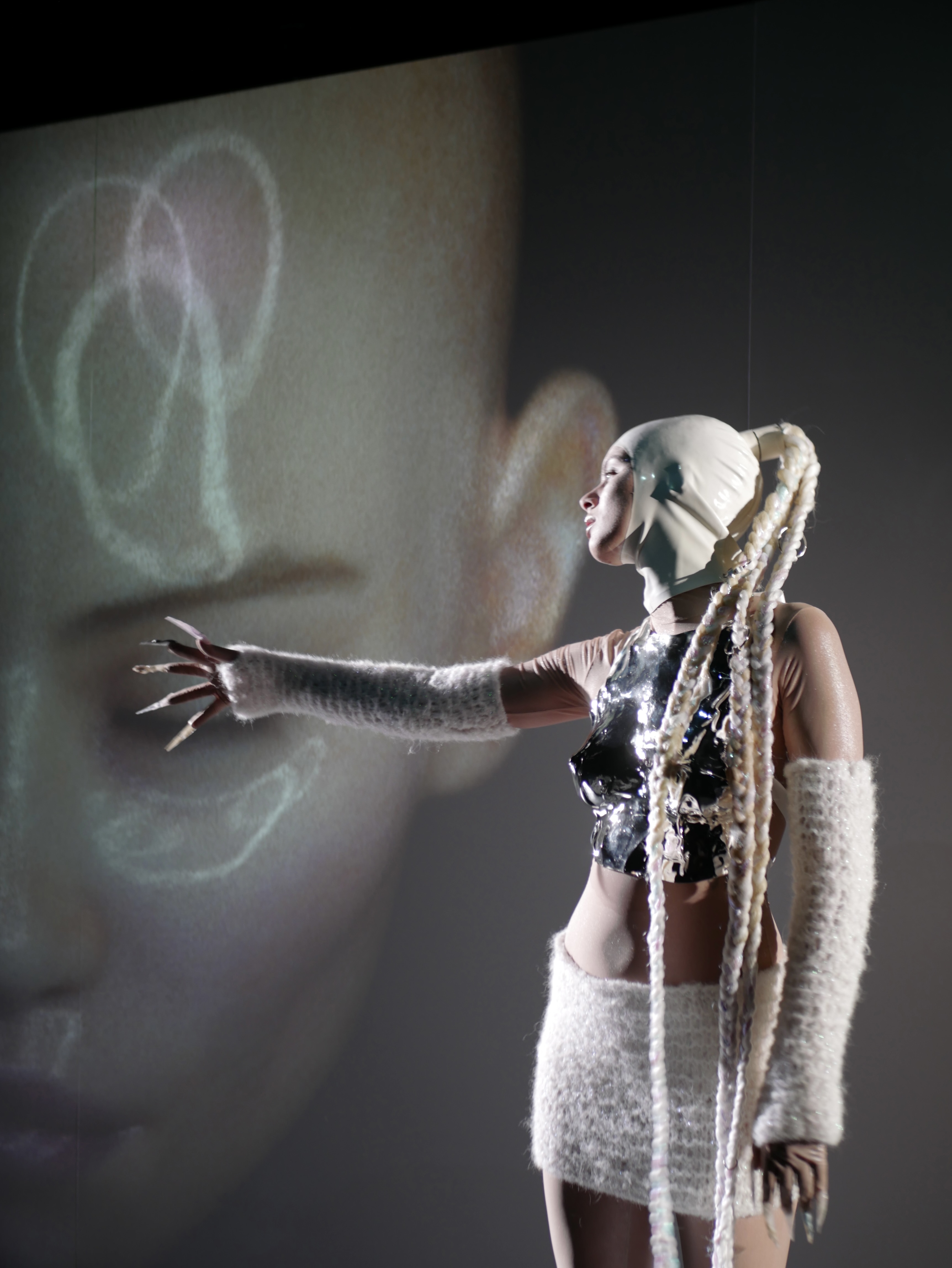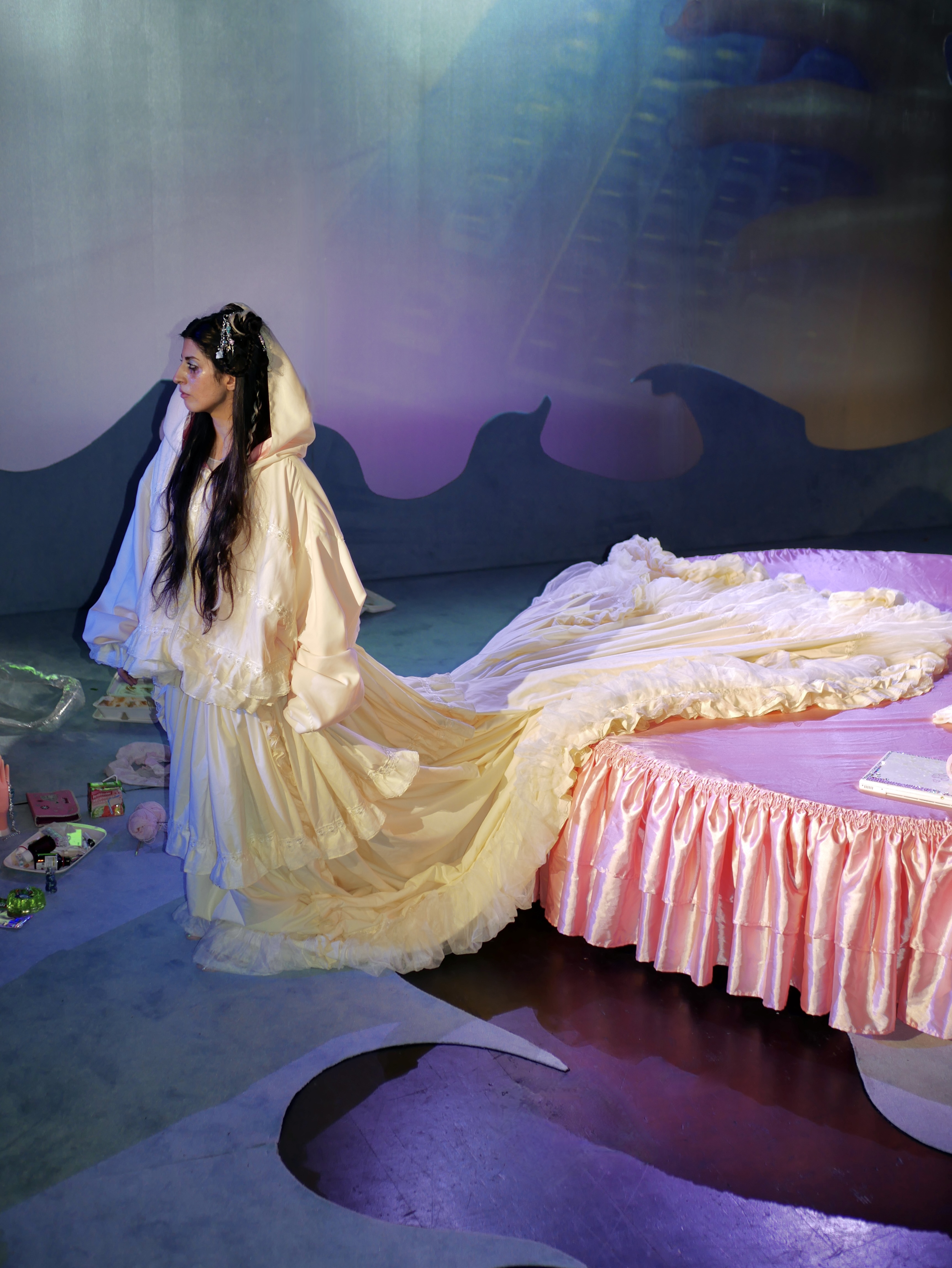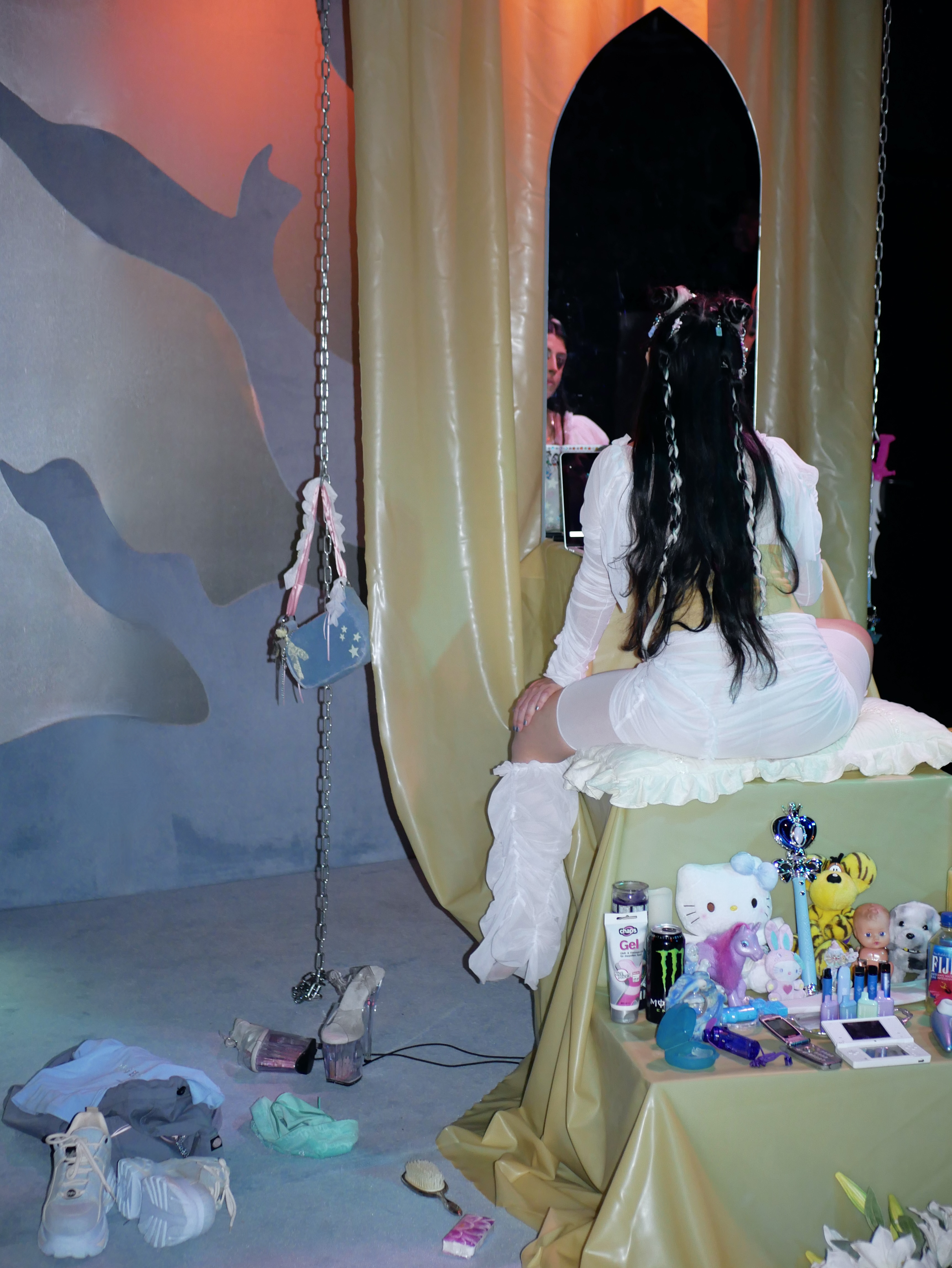 Winnie lives in her own universe on Tumblr under the nickname CYB3R_ANG3L_3. The endless data streams of cyberspace are the culture to which she connects her innermost being, her thoughts, feelings, and fears. After going through a painful experience, she spends her days between brain and bed rotting in her room. Cyberangel combines performance with multimedia installation and documents Winnie’s daily life in search of healing.