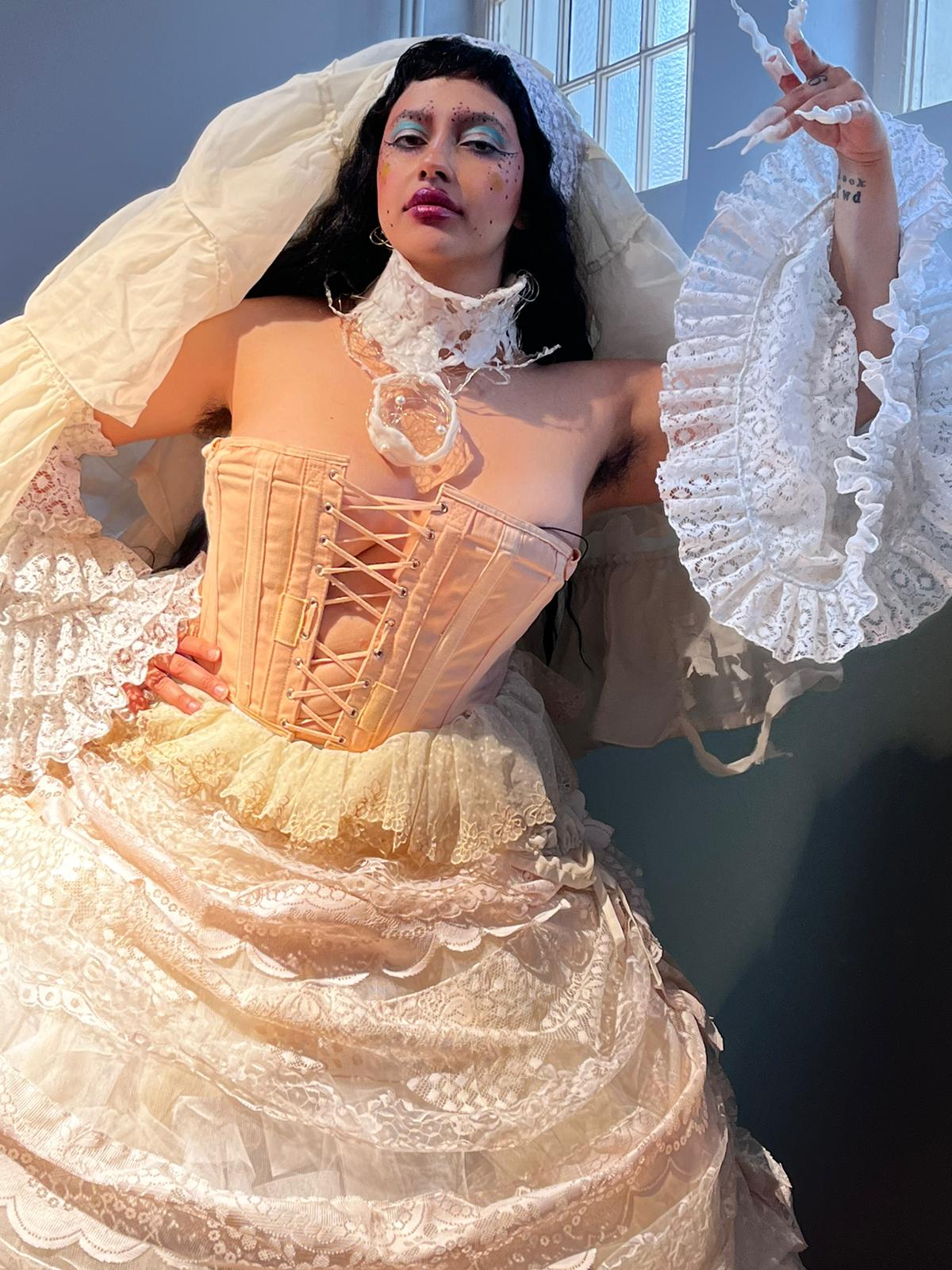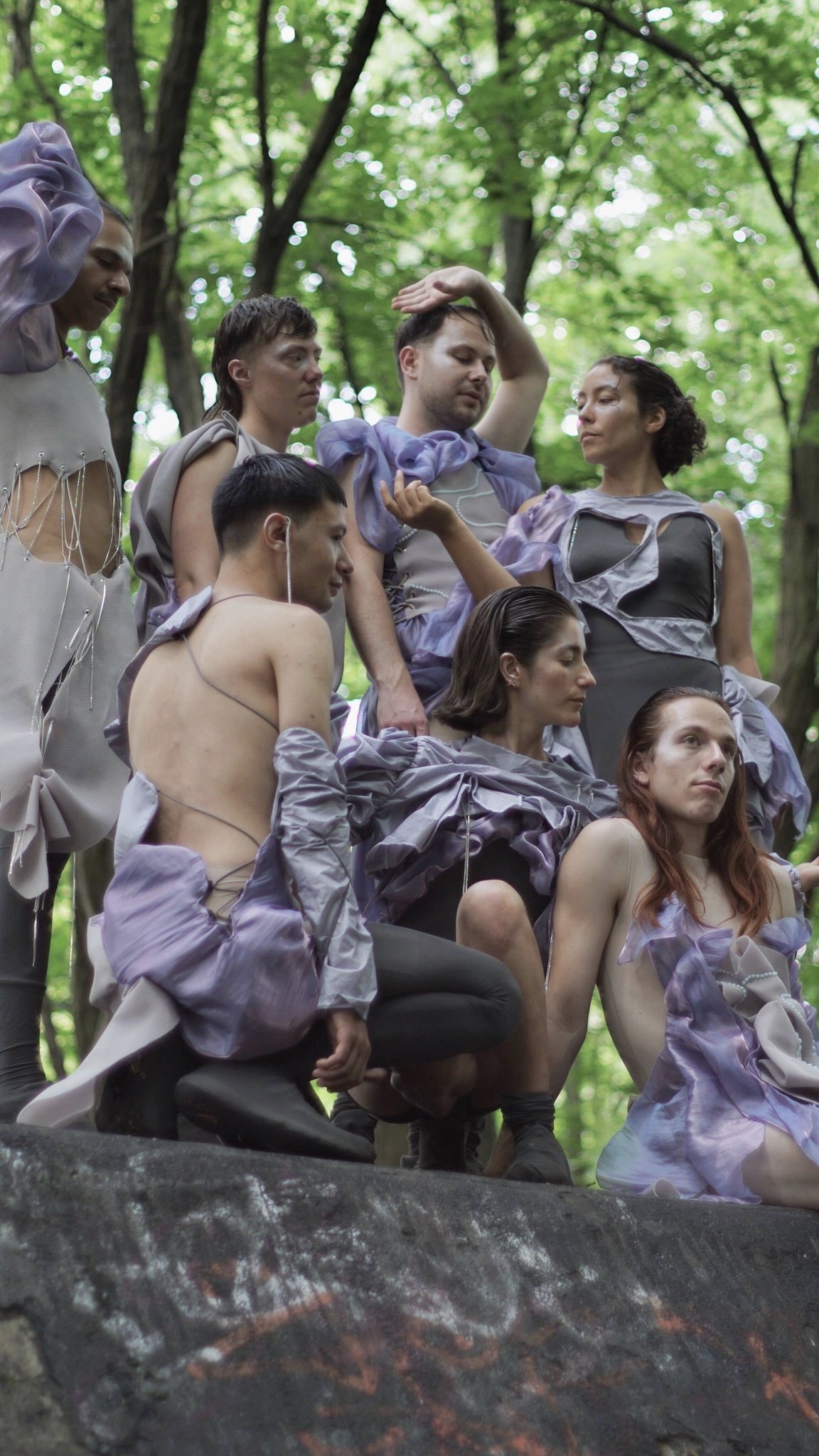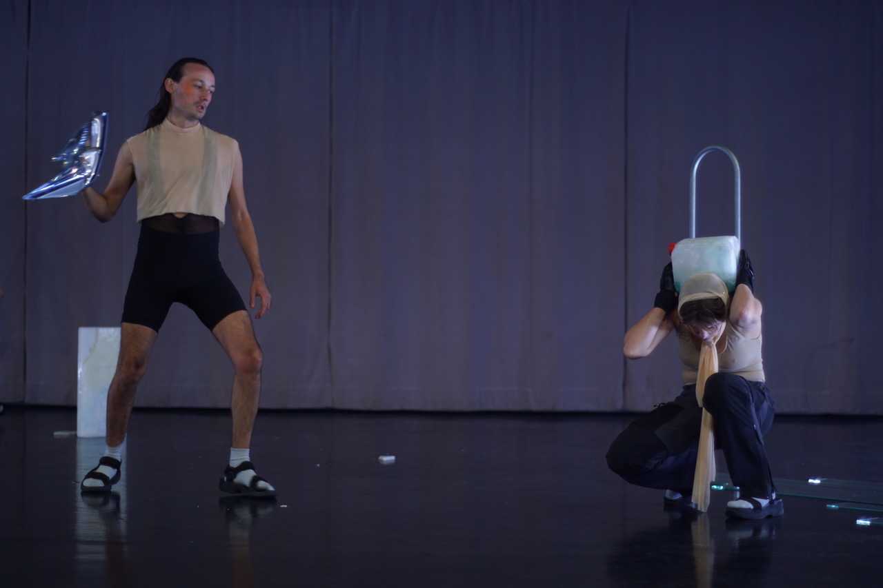 Which relationship can a garment and a body enter into? Today's everyday clothing often functions as an elastic tube to which the body gives a specific shape. The garment adapts to the shape of the body. In our imagined utopia, queer bodies and garments should instead stand independently for themselves, coexist equally, and at points enter into a relationship of tension. Not allowing a clear allocation of gender or time, the costumes oscillate between sculpture and clothing, between futurism and historical references. In active contact with the body, reinforcing the wearer’s gestures.This overall ambiguity positions itself outside the binary system: The costumes create a space in which a queer utopia can be imagined without culturally defined boundaries of gender and sexuality.